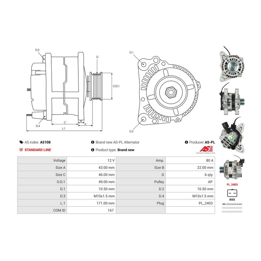 Tillverkare Tillverkare kod Pris AD KÜHNER 554341RI AES 225.559.080.130 AS-PL A5108 (denna produkt) AS-PL A5108 BTS Turbo G103414 BTS Turbo G106942 CASCO CAL35207AS CASCO CAL35207GS CEVAM 40035 CV PSH 225.559.080.340 CV PSH 225.559.080.346 CV PSH 225.559.080.130 DA SILVA 011229 DRI 229149802 EAI 57445 ELSTOCK 28-5864 ERA 209386A ERA 209386R FEBI BILSTEIN 193297 Tillverkare Tillverkare kod Pris FISPA A12VA0025A2 FISPA A12VA1173A2 FISPA A12MH0523A2 FRIESEN 9092132 HERTH+BUSS ELPARTS 32082740 HOFFER H5535187 KAMOKA 8620087 MEAT & DORIA 5535187 SIDAT A12VA1173A2 SIDAT A12VA0025A2 SIDAT A12MH0523A2 SNRA TP8054 TRISCAN 8310 28013 TURBO MOTOR AL02890 VALEO 440881 VALEO 443282 WALKER WAL00155 WILMINK GROUP WG2263695 WILMINK GROUP WG2471837 -