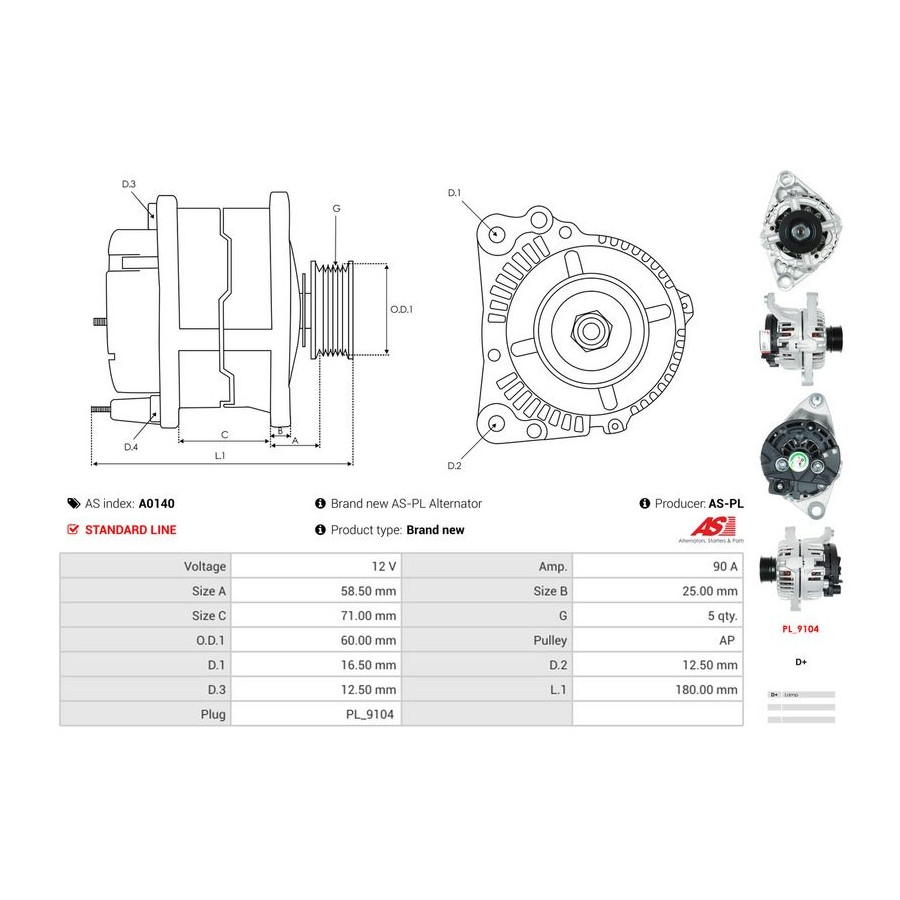 Tillverkare Tillverkare kod Pris AES 505.522.090.280 AES 505.522.090.010 ALANKO 10442239 AS-PL A0140 (denna produkt) AS-PL A0140 ASHIKA AL-144JM BORG & BECK BBA2391 BTS Turbo G100979 BTS Turbo G100408 BTS Turbo G106006 BTS Turbo G100407 CASCO CAL10107GS CASCO CAL10107OS CASCO CAL10107AS CEVAM 4500 COMLINE CAR-821148 CV PSH 505.522.090.280 CV PSH 505.522.090.215 CV PSH 505.522.090.340 CV PSH 505.522.090.210 CV PSH 505.522.090.010 DA SILVA 010201 Tillverkare Tillverkare kod Pris DIPASPORT ALT119N DRI 218163902 EAI 56791 ELSTOCK 28-3737 ERA 210254 ERA 210254A FISPA A12BH0080A2 HC-Cargo F 032 112 190 HERTH+BUSS ELPARTS 32042001 HOFFER H5510051 JAPANPARTS AL-144JM JAPKO AL-144JM KAMOKA 8620037 MEAT & DORIA 5510051 SIDAT A12BH0080A2 SNRA FI8052 TURBO MOTOR AL01874 VALEO 437672 VALEO 443186 WALKER WAL00620 WILMINK GROUP WG2174924 -