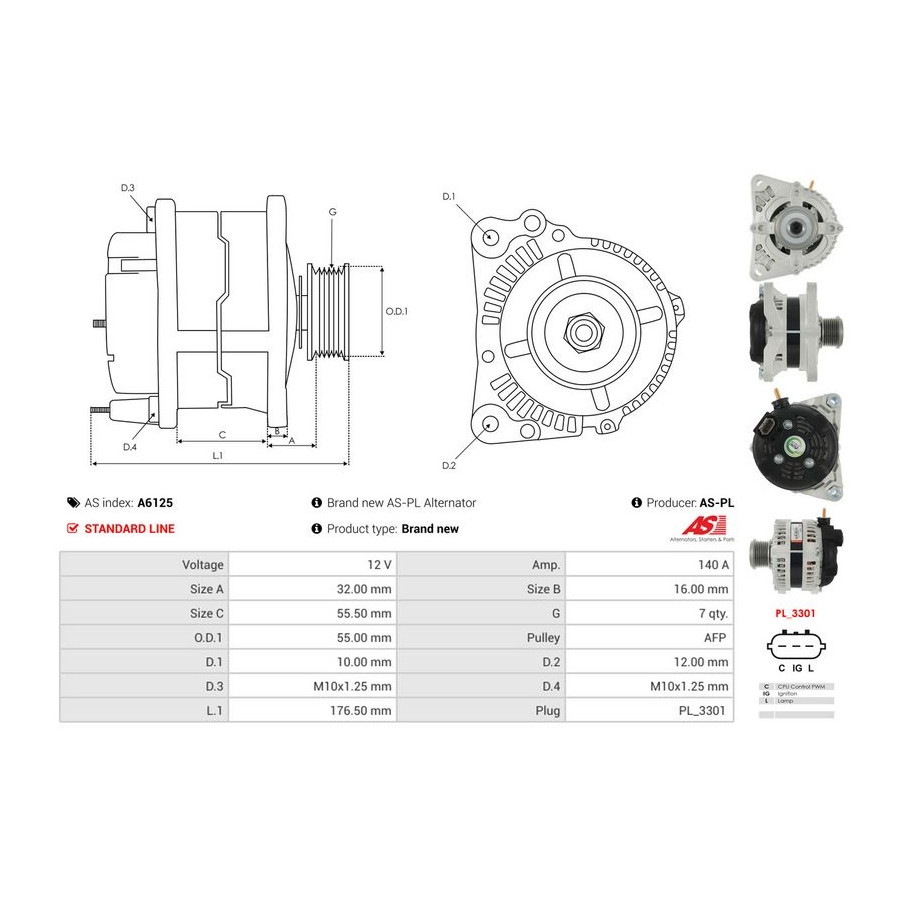 Spänning [V] 12 Generator-laddström [A] 140 Remskivor Med frilöpande remskiva för OE-nummer 1042104660 Kvalitet Standard line Garanti 2 år Ny del utan deposition Liknande produkter från andra tillverkare