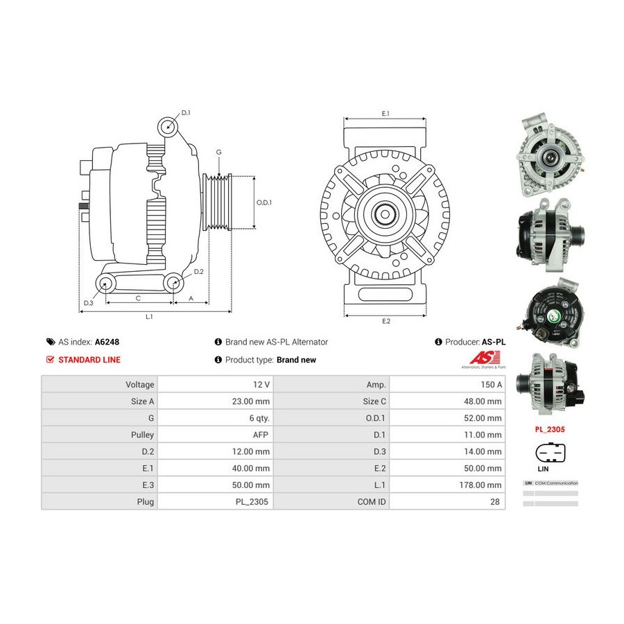 Tillverkare Tillverkare kod Pris AES 455.525.150.050 AES 455.525.150.260 ALANKO 10444071 AS-PL A6248 (denna produkt) AS-PL A6248 BTS Turbo G101651 BTS Turbo G103631 CASCO CAL40389GS CASCO CAL40389AS CV PSH 455.525.150.050 Tillverkare Tillverkare kod Pris CV PSH 455.525.150.260 EAI 57471 FISPA A12DE1220A2 HERTH+BUSS ELPARTS 32085230 HOFFER H5540271 MEAT & DORIA 5540271 SIDAT A12DE1220A2 SNRA LR8023 VALEO 444253 WILMINK GROUP WG2197015 -