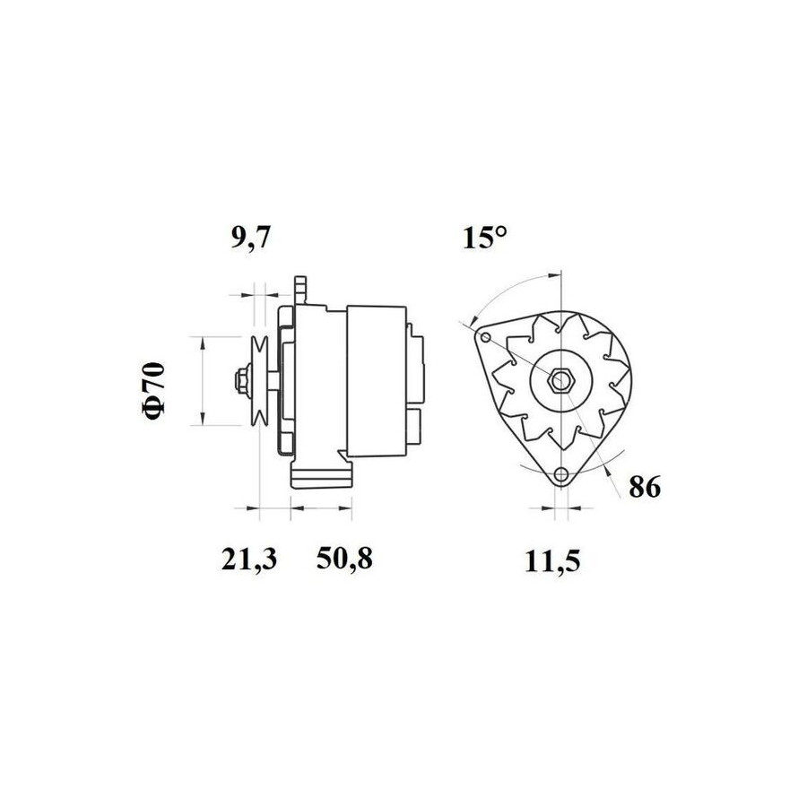 | Avstånd från remskiva till generator [mm] | 21,3 |