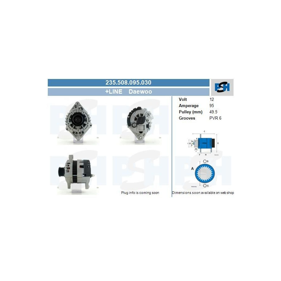 Spänning [V] 12 Ribbantal 6 Generator-laddström [A] 95 Kvalitet + Linje Bil-elsystem För fordon med 12V elsystem Garanti 2 år -