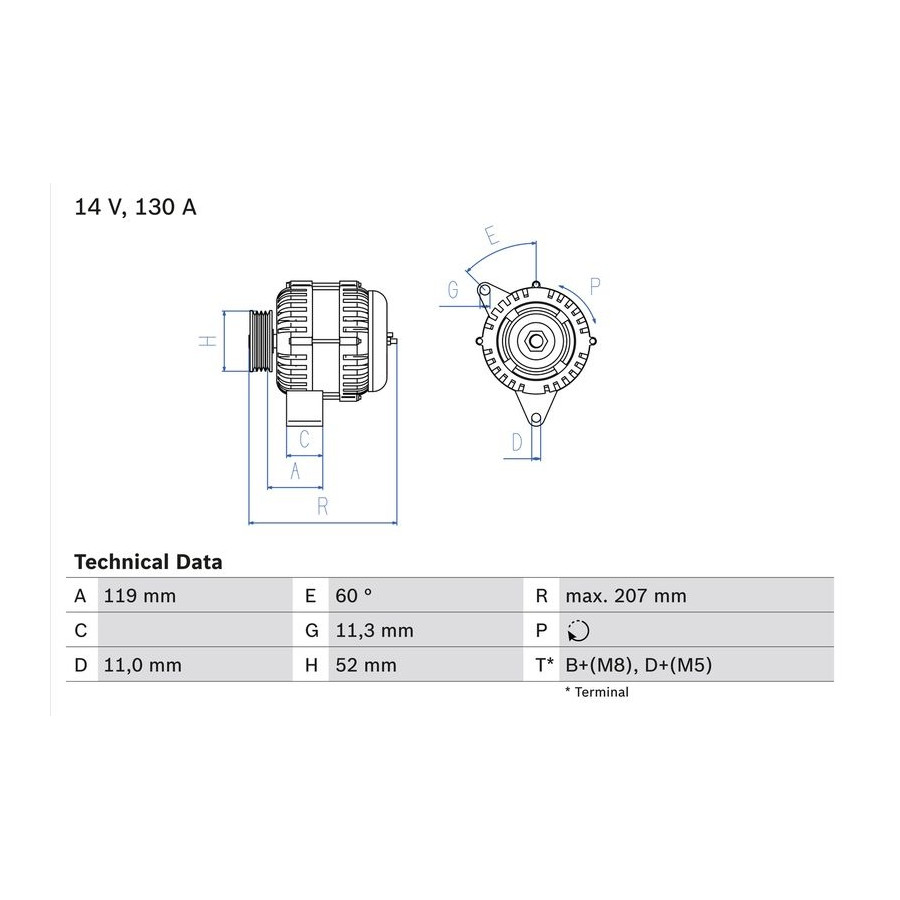| Avstånd från remskiva till generator [mm] | 119 |