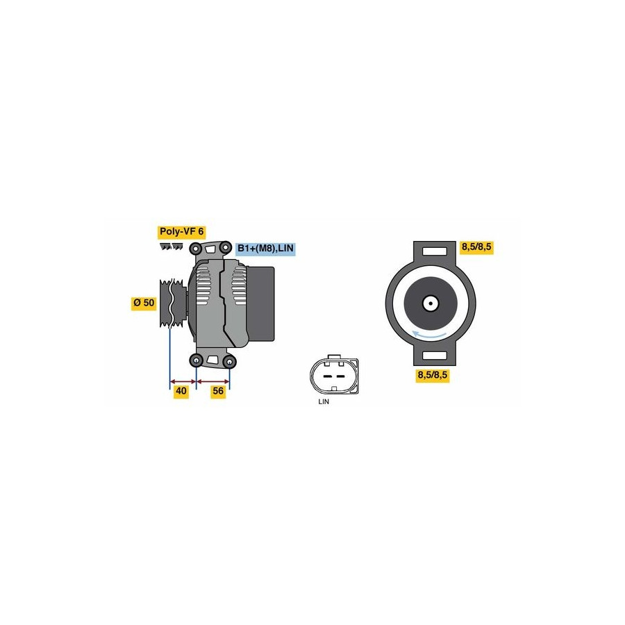 Spänning [V] 14 Generator-laddström [A] 120 Remskive-Ø [mm] 50 Antal splines 6 Remskivor Med frilöpande remskiva Avstånd från remskiva till generator [mm] 31,4 Rotationsriktning Rotation medsols Klämma B1+(M8) Lin Kontaktutförande-ID PL166 Generatorutförande Exkl. vakumpump Rekomm. reparationsutökning Aggregatrem/flerspårsrem Garanti 2 år Fastsättningssätt Direkt bekräftelse Längd [mm] 205 Renoverad artikel Liknande produkter från andra tillverkare