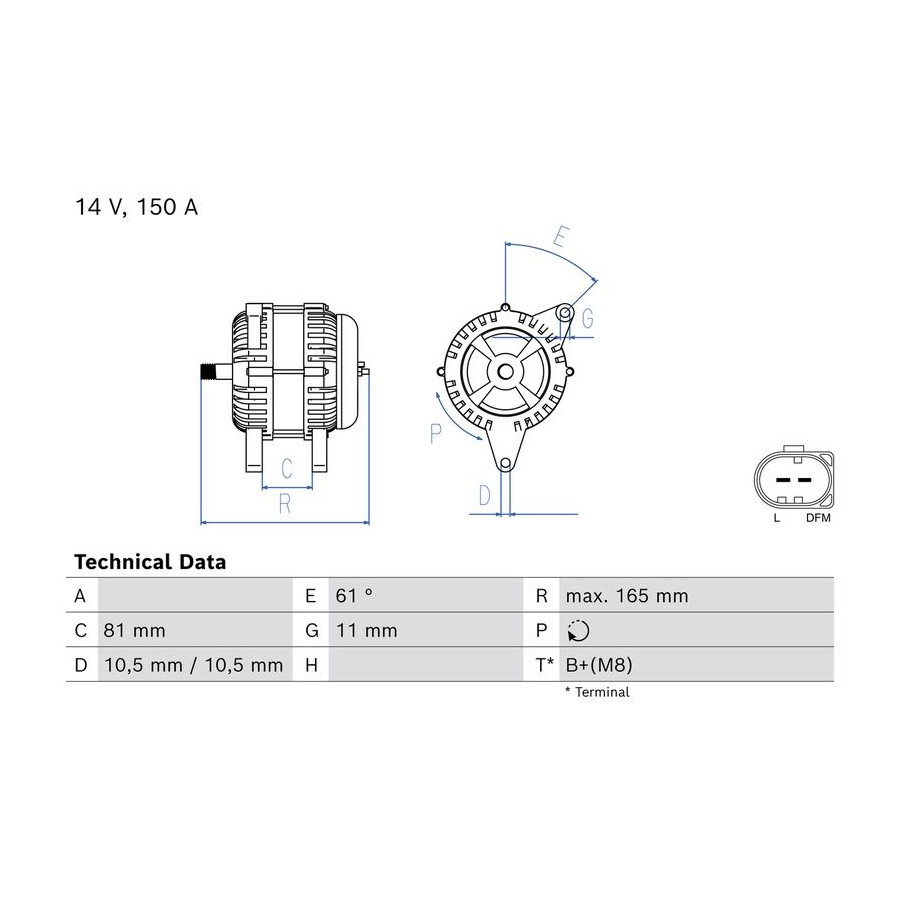 | Generator-laddström [A] | 150 |