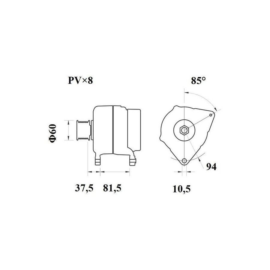 | Avstånd från remskiva till generator [mm] | 37,5 |