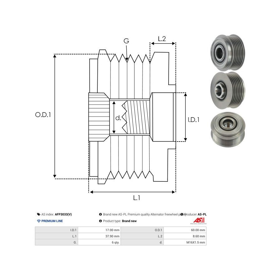 Kvalitet Premium Line Gängmått M16x1,5 Antal splines 6 Garanti 2 år Ny del utan deposition -