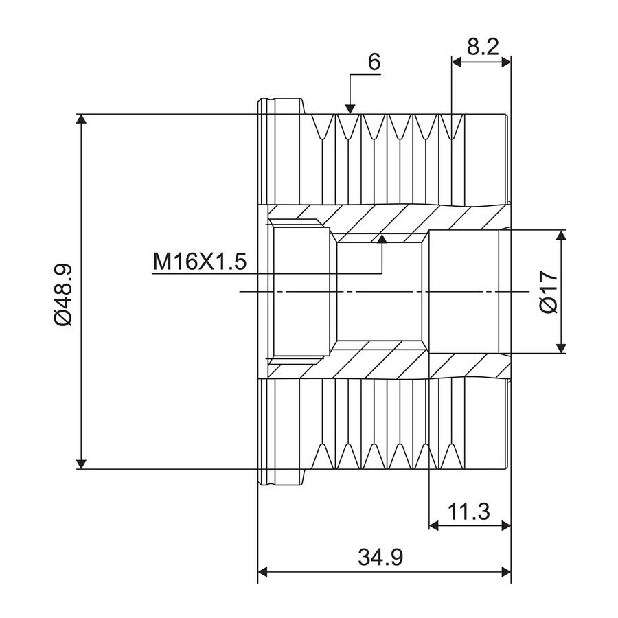 | Antal splines | 6 |