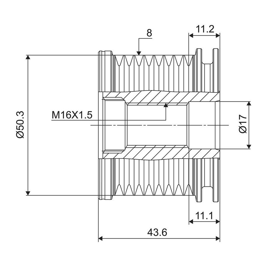 | Antal splines | 8 |