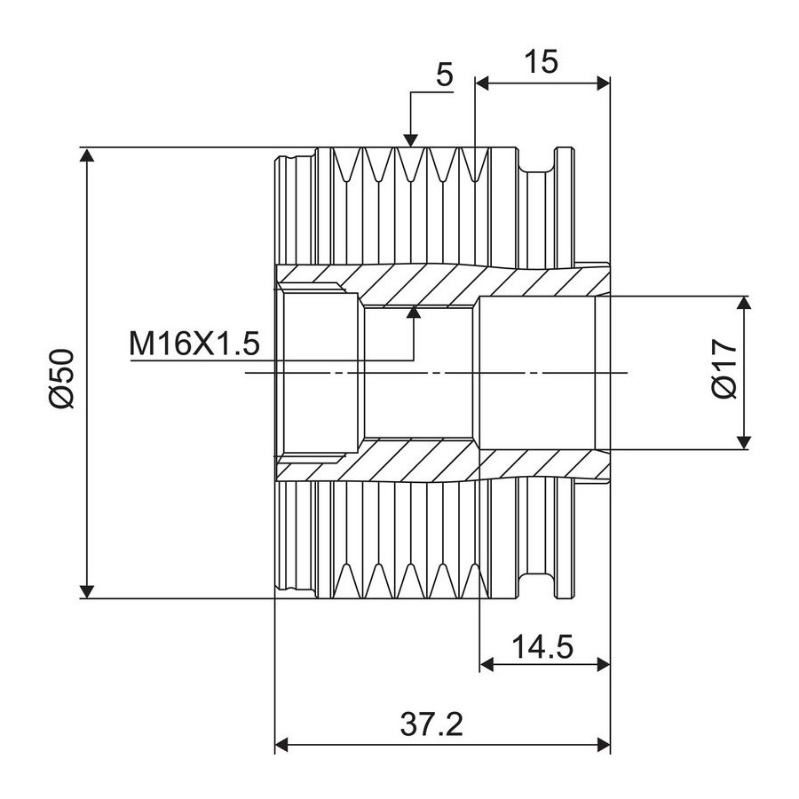 | Antal splines | 5 |