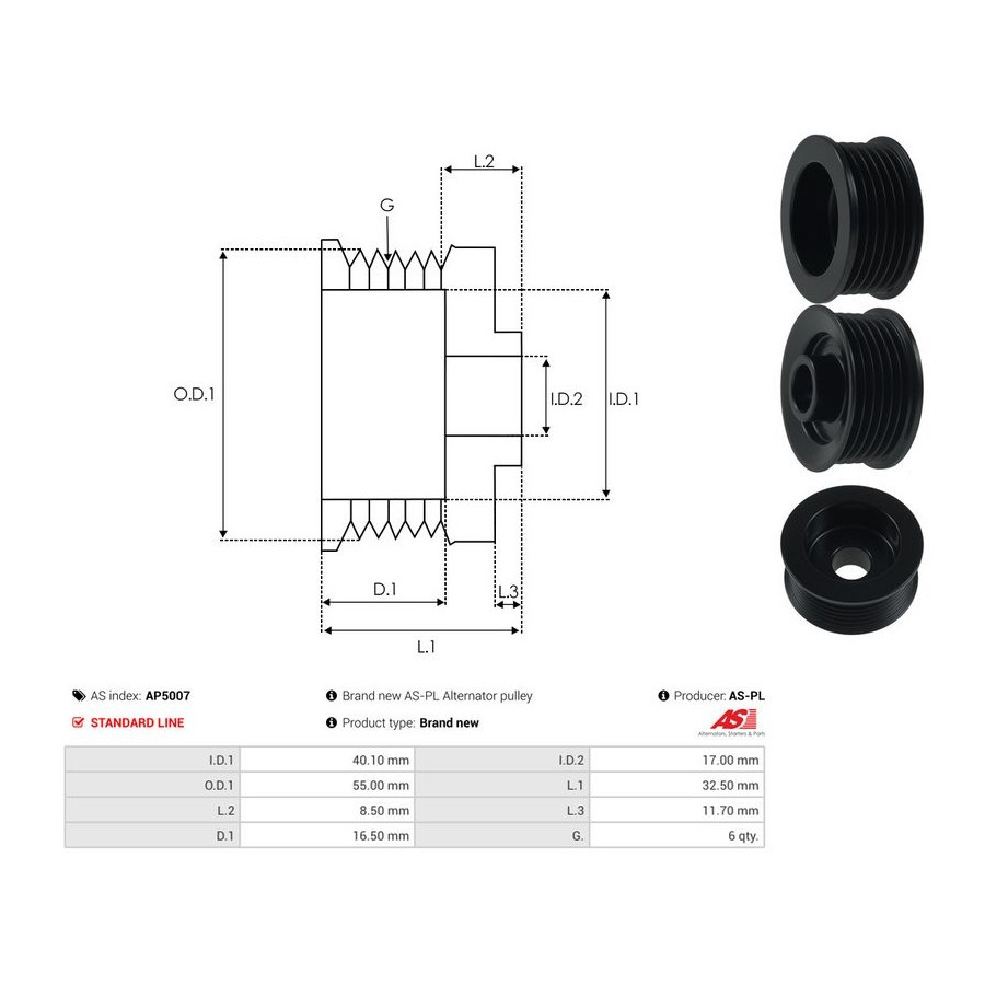Innerdiameter 1 [mm] 17,00 Innerdiameter 2 [mm] 40,10 Ytterdiameter 1 [mm] 55,00 Kvalitet Standard line Antal splines 6 Garanti 2 år Ny del utan deposition -