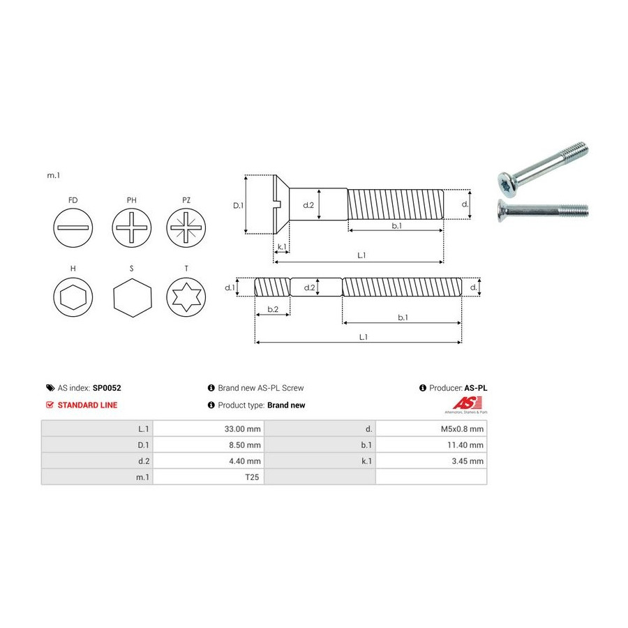 Kvalitet Standard line Längd 1 [mm] 33 Garanti 2 år Ny del utan deposition -