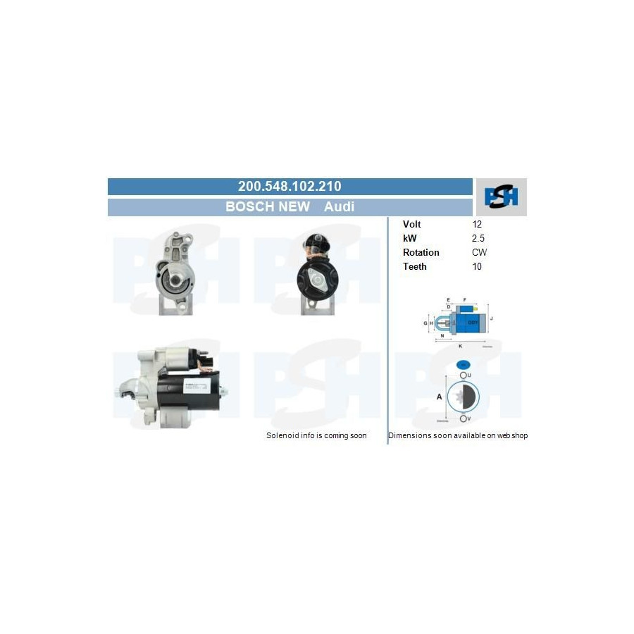 Starter Audi 1,7 kw 200.548.102.210 Bosch