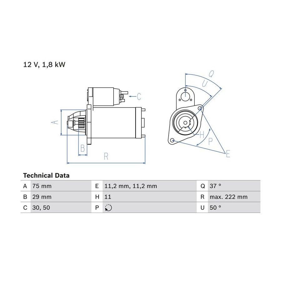 Tandantal 11 Nominell effekt [kW] 1,8 Antal fästhål 2 Rotationsriktning Rotation medsols Spänning [V] 12 Position/Grad Höger Klämma 50 30 Utbytesdel Garanti 2 år Monteringsvinkel [Grader] 50 antal gänghål 0 Längd [mm] 222 Pinion startposition [mm] 29 starter Version Utan en teaser Öppningens vinkelmått i grader 37 Vinkelstorlek fixeringsborrhål [grader] 50 Flänsdiameter [mm] 75 Håldiameter [mm] 11,2 Håldiameter 2 [mm] 11,2 Liknande produkter från andra tillverkare