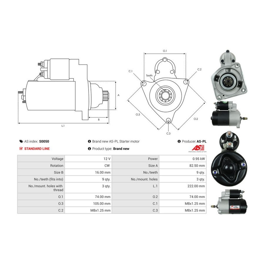 Tandantal 9 Antal fästhål 3 Rotationsriktning Rotation medsols Startmotorns effekt [kW] 0,95 Spänning [V] 12 för OE-nummer 0001208711 Kvalitet Standard line Garanti 2 år Ny del utan deposition Liknande produkter från andra tillverkare