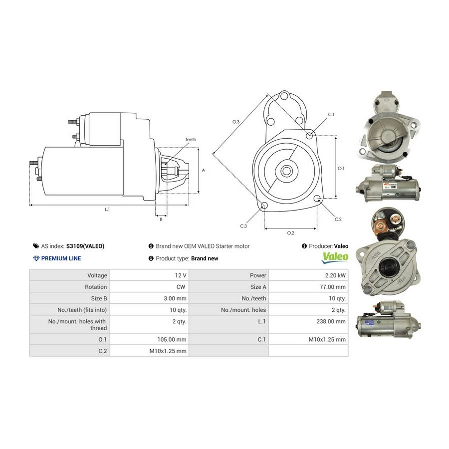 Tandantal 10 Nominell effekt [kW] 2,2 Antal fästhål 2 Rotationsriktning Rotation medsols Spänning [V] 12 Kvalitet Premium Line Garanti 2 år Ny del utan deposition Liknande produkter från andra tillverkare