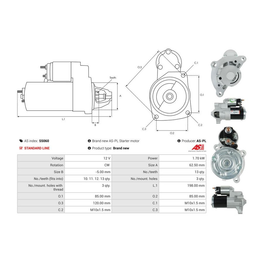 Tandantal 13 Nominell effekt [kW] 1,7 Antal fästhål 3 Rotationsriktning Rotation medsols Spänning [V] 12 för OE-nummer M1T80381 Kvalitet Standard line Garanti 2 år Ny del utan deposition Liknande produkter från andra tillverkare