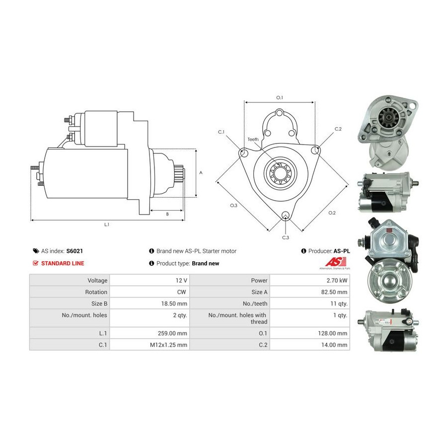 Tandantal 11 Nominell effekt [kW] 2,7 Antal fästhål 2 Rotationsriktning Rotation medsols Spänning [V] 12 Kvalitet Standard line Garanti 2 år Ny del utan deposition Liknande produkter från andra tillverkare
