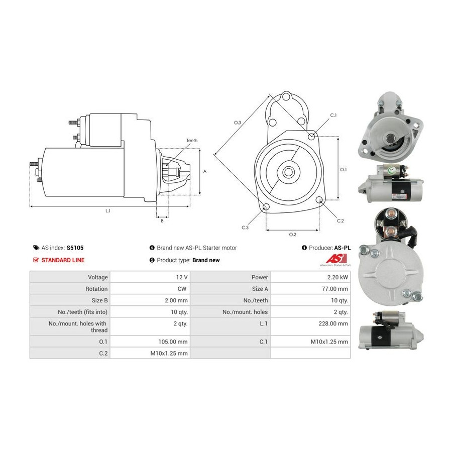 Tandantal 10 Nominell effekt [kW] 2,2 Antal fästhål 2 Rotationsriktning Rotation medsols Spänning [V] 12 Kvalitet Standard line Garanti 2 år Ny del utan deposition Liknande produkter från andra tillverkare