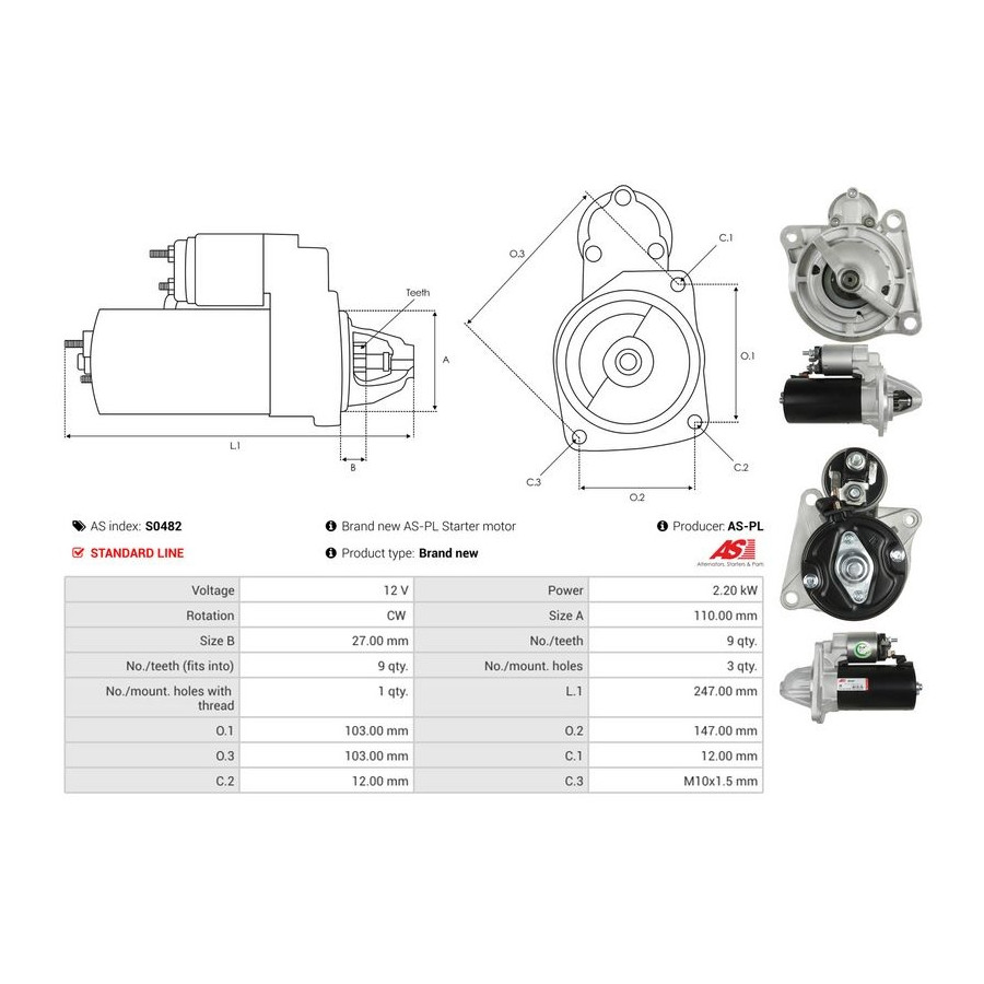Tandantal 9 Nominell effekt [kW] 2,2 Antal fästhål 3 Rotationsriktning Rotation medsols Spänning [V] 12 Version 0001109344 Kvalitet Standard line Garanti 2 år Ny del utan deposition Liknande produkter från andra tillverkare