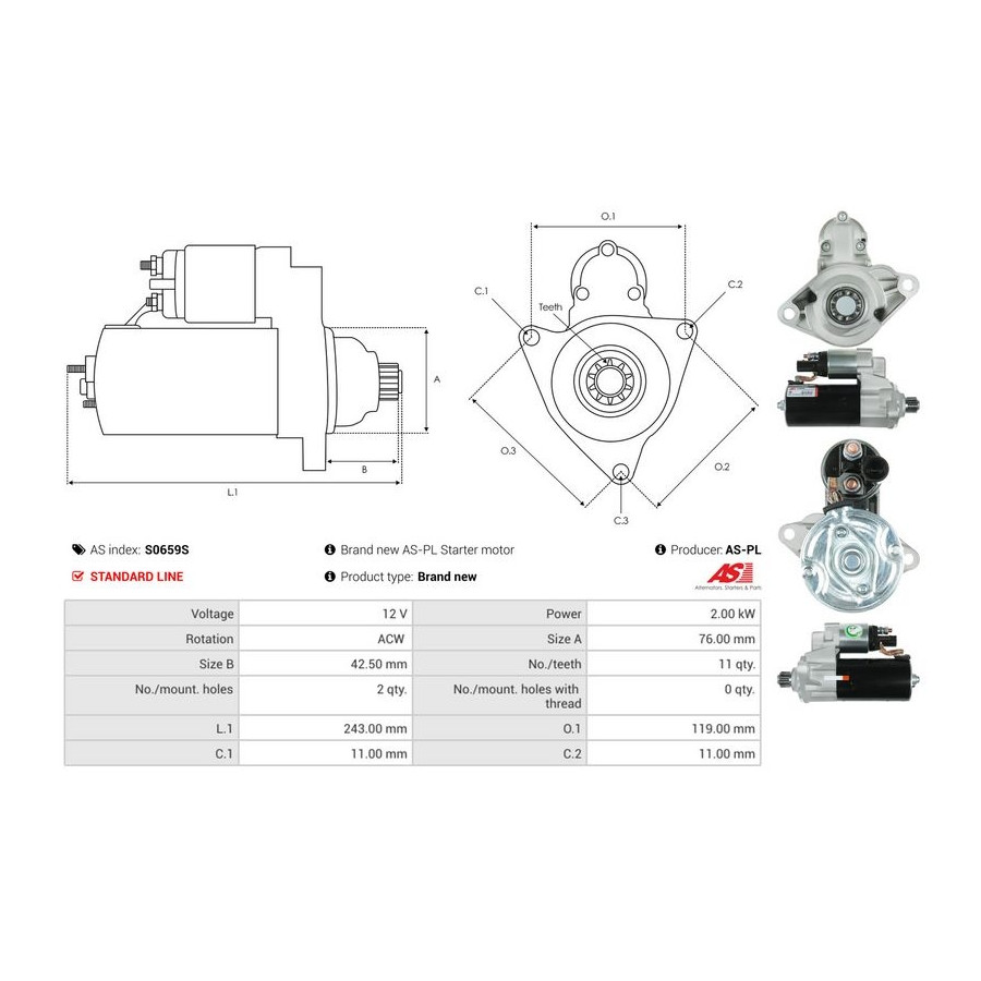 Tandantal 11 Nominell effekt [kW] 2 Antal fästhål 2 Rotationsriktning Rotation motsols Spänning [V] 12 Version 0001123036 Kvalitet Standard line Garanti 2 år Ny del utan deposition Liknande produkter från andra tillverkare