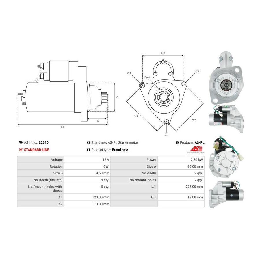 Tandantal 9 Nominell effekt [kW] 2,8 Antal fästhål 2 Rotationsriktning Rotation medsols Spänning [V] 12 Kvalitet Standard line Garanti 2 år Ny del utan deposition Liknande produkter från andra tillverkare