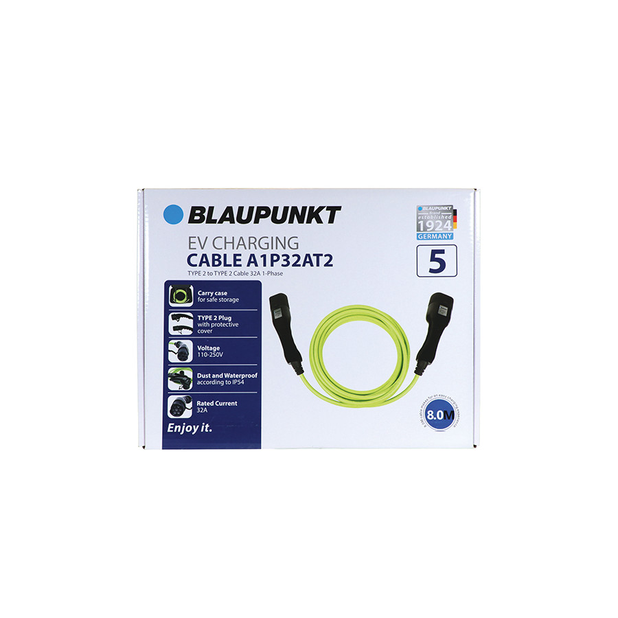 Blaupunkt laddningskabel är det perfekta komplementet till din elbil. Tillverkad av syntetmaterial är den speciellt utformad för maximal prestanda och hållbarhet. Denna Blaupunkt laddningskabel finns i en längd på 8 meter, vilket ger maximal flexibilitet.